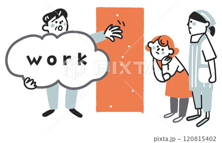 仕事を捌ききれない経営者と年収の壁で隔たれた時給労働者 ストックイラスト素材