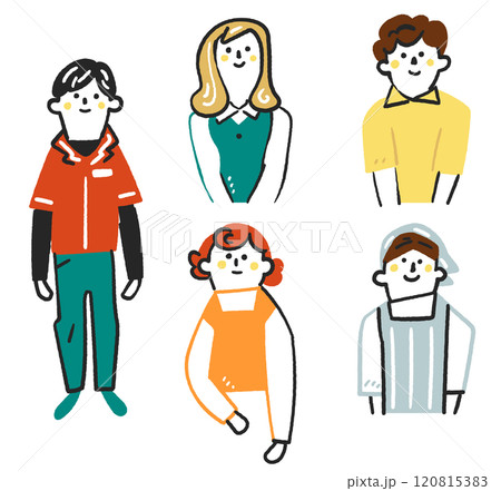 非正規雇用で働き社会を下支えしている人々 セットのストックイラスト素材