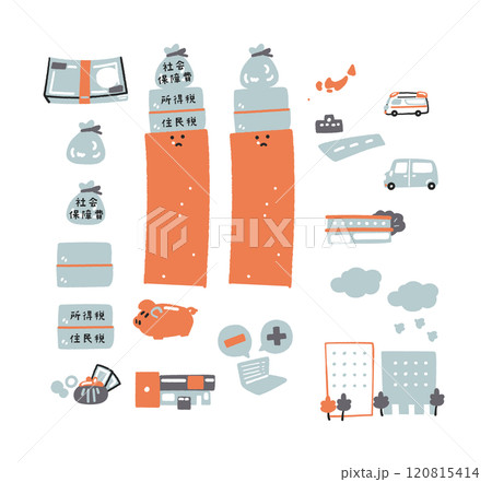 収入と税金・社会保障費のイメージ ストックイラスト素材