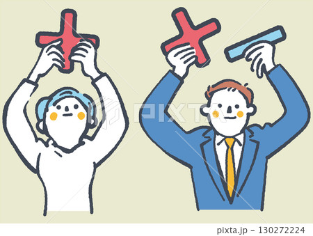 仕事を捌ききれない経営者と年収の壁で隔たれた時給労働者 ストックイラスト素材