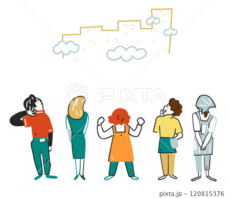 非正規雇用で働き社会を下支えしている人々 セットのストックイラスト素材