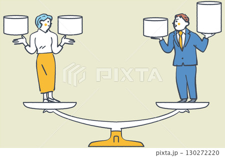天秤に乗りバランスを取る夫婦 ストックイラスト素材