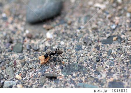地面に落ちていた食べ物を運ぶ蟻