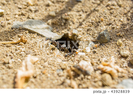 巣を出たり入ったり忙しそうな働き蟻