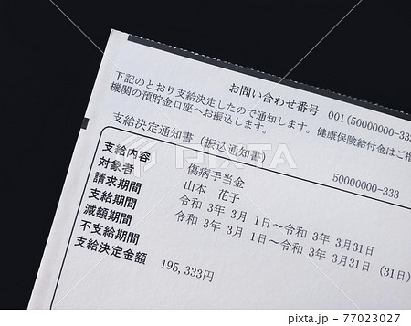 傷病手当金の払い込み通知書