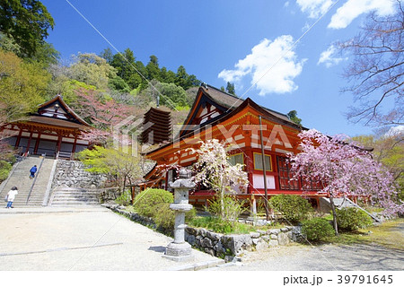 奈良県桜井市の談山神社の十三重塔と儀式殿と桜