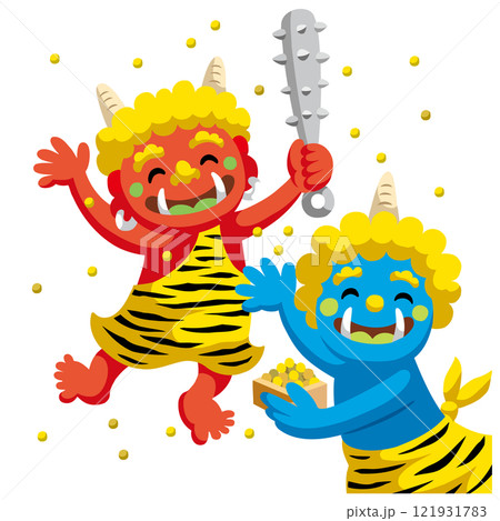 ふんわりかわいい赤鬼と青鬼のイラスト素材 節分の日