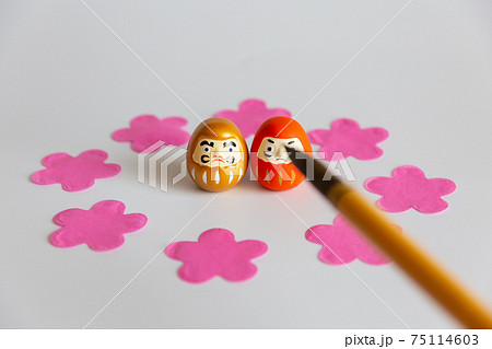 花びらとダルマ 合格 当選 祈願成就のイメージ