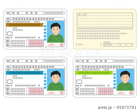 運転免許証 (ゴールド免許) の表面イメージカード 人物バリエーションのベクターアイコンセット