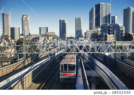 日本の川崎都市景観 東急電鉄 元住吉駅などを望む