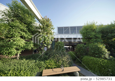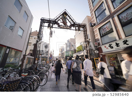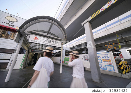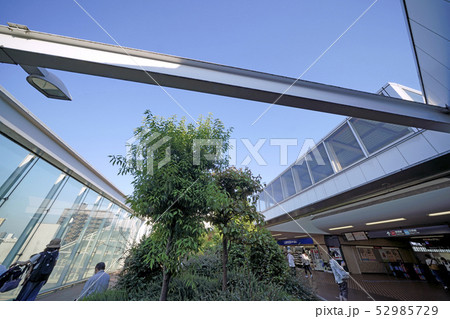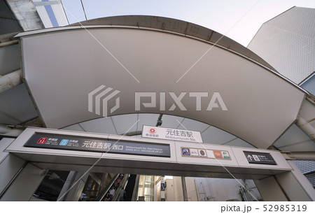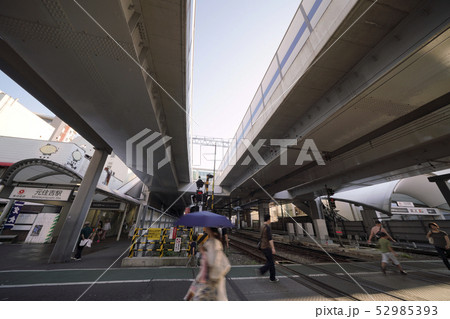 日本の川崎都市景観 東急電鉄 元住吉駅前の商店街などを望む