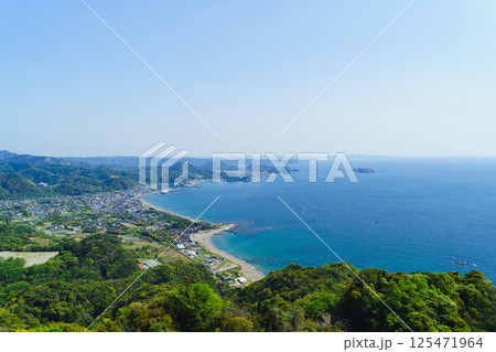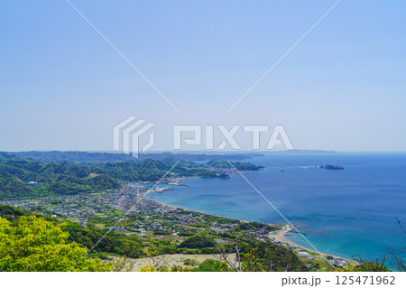 【千葉県安房郡鋸南町】鋸山からみた元名海岸・保田中央海岸方面の風景
