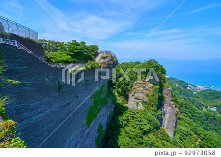千葉県鋸南町の地獄のぞき付近の鋸山日本寺展望台を見る