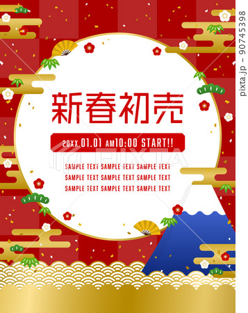 お正月セール向け 富士山、波、松竹梅の広告テンプレート(縦向き)