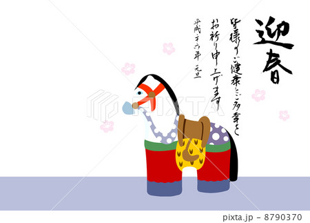 2014年午年年賀状テンプレート土人形筆文字