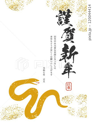 シンプルモダンな巳年年賀状はがきテンプレート 縦向き 年号なし