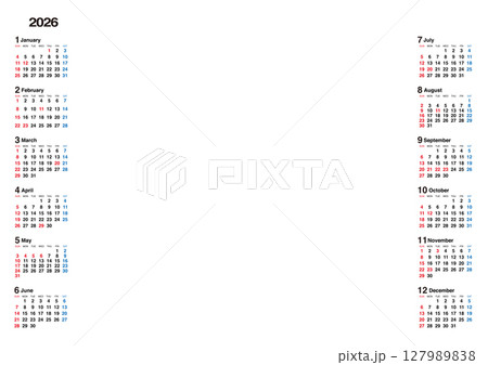 2026年の年間カレンダー EPSとPNGで全面にお気に入りの画像やイラストを配置できます