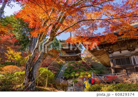 滋賀県 湖南三山の一つ 紅葉の美しい常楽寺の三重塔 散策する参拝客