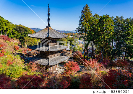 滋賀県 湖南三山の一つ 紅葉の美しい常楽寺の本堂と三重塔