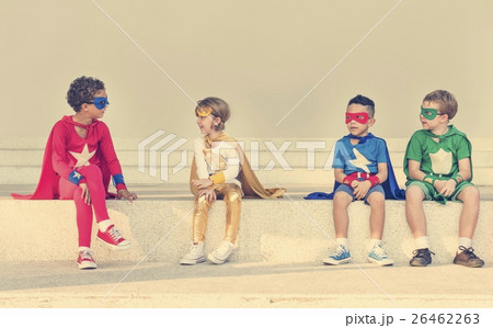 Superheroes Cheerful Kids Expressing Positivity Concept