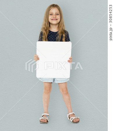 Little girl smiling and holding blank placard