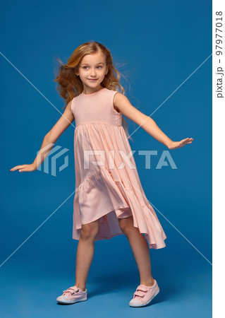 Adorable caucasian little girls dressed as a ballerina in white tutu in studio