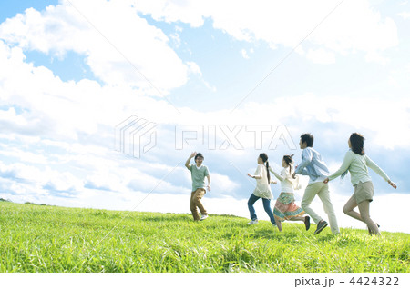 草原を走る5人の若者たち