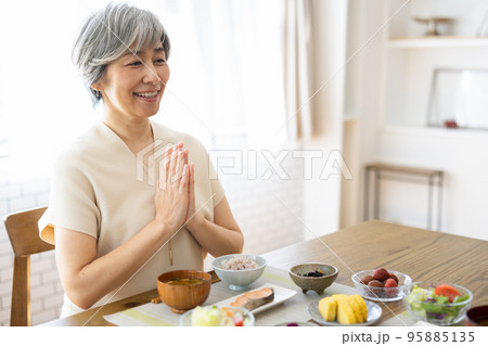食事を前に手を合わせる女の子
