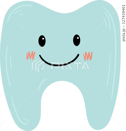 A cheerful cartoon tooth with a friendly smile and rosy cheeks illustration.