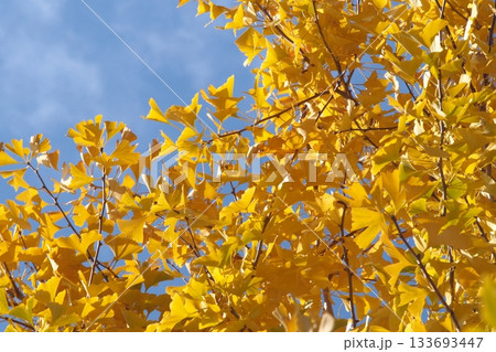 イチョウの黄葉と秋空