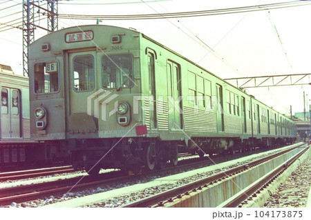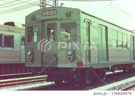 東急、初代7000系トップナンバーの7001号車、元住吉検車区、1980年3月16日