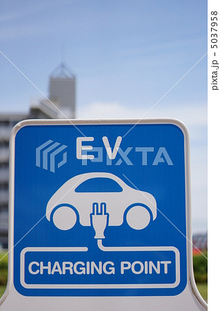 電気自動車 充電スタンド エコカー 充電中の乗用車 EV車 イメージ素材