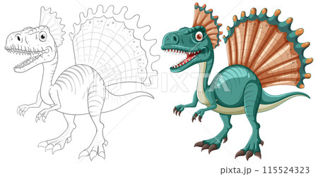 Dimetrodon dinosaur. On white background with dropped shadow and clipping path.