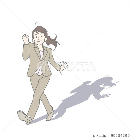 ガッツポーズで進んでいくパワフルなスーツの女性