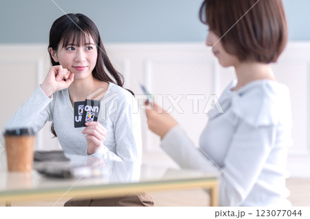 カードゲームで遊ぶ若い2人の女性