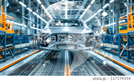 デジタル環境が備えた次世代自動車製造ラインのイメージ。
