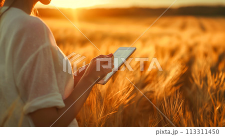 The farmer receives information on the state of the crop and conditions in agricultural field by phone. Process of crop maturation, moisture and soil nutrition. Advanced technologies