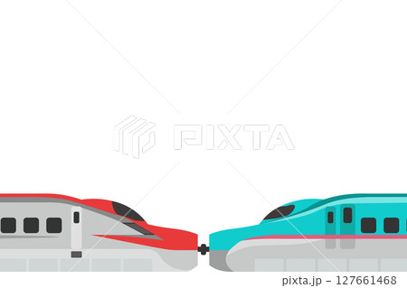 おもちゃ風の新幹線E5系とE6系の連結したイラスト背景
