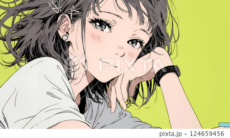 微笑む女子高生の後ろに流れる時間|感情系素材