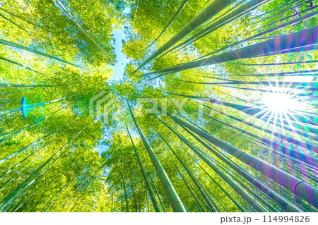 日本の横浜都市景観 黄色みがかり始めた美しい竹林と太陽光…希望の光…=5月16日