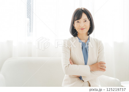 白いスーツ姿のミドルキャリアウーマンイメージ