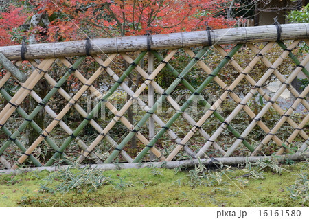 錦秋に歩く京都市北区 光悦寺茶室の光悦垣