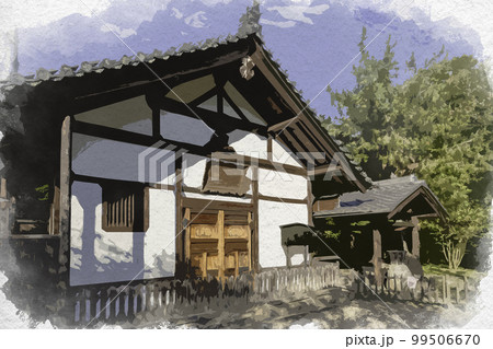 水彩画風 法華寺 光月亭 奈良県奈良市
