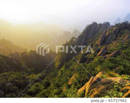 中国安徽省・黄山 夕方の光明頂からの眺め/ Huangshan (Yellow Mountains)