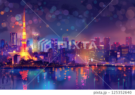 東京タワーと美しい東京の夜景(3D)-2