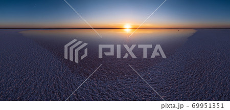 Salt on a pink salt lake at sunset. Pink Salt Lake Hutt Lagoon.