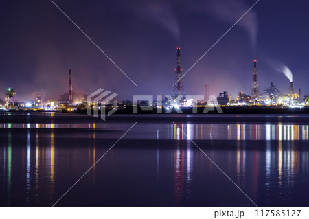 日本の岡山県倉敷市の水島コンビナートの美しい工場夜景