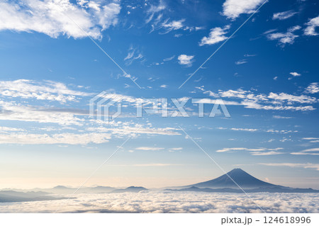 山梨県山梨市 朝の国師ヶ岳から望む富士山
