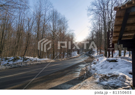 クロアチア 冬のプリトヴィツェ湖群国立公園 入口 案内表示 / Plitvice, Croatia