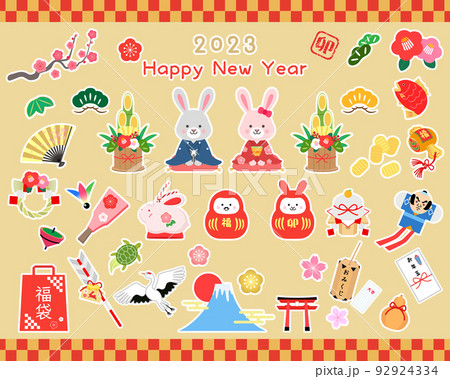 2023年 ウサギ年用 お正月アイコンイラストセット